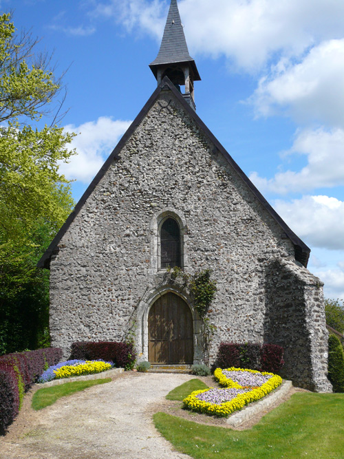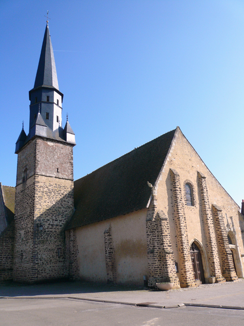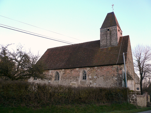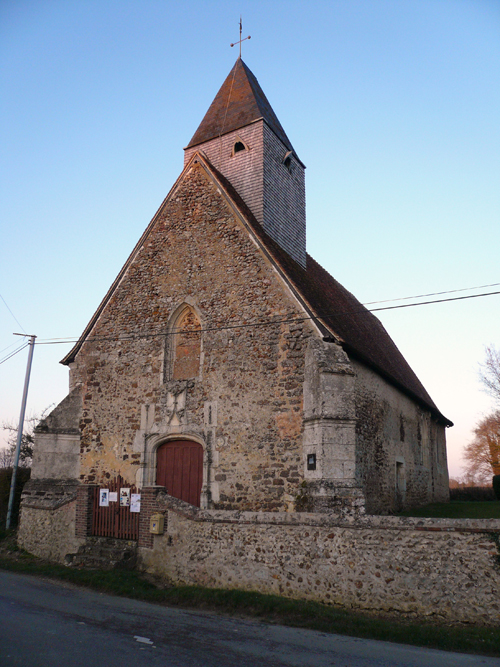Située en pleine campagne, près d’une mare et d’un tout petit cimetière, cette église romane du XIème siècle symbolise bien les paysages du Perche. L'édifice a été construit en 1059 par l'Abbaye Saint-Père de Chartres sur les ruines d'une église plus ancienne. La charpente de la voute en forme de vaisseau renversé date du XVème siècle, ainsi que les peintures murales, dont l’une représente « le dit des trois vifs et des trois morts ». Elle renferme également une magnifique collection de 14 statues en bois polychromes du XVIème siècle. Le mobilier est du XVIIèmesiècle. Le portail renaissance et le clocher en bardeaux (tuiles en bois) méritent le détour.