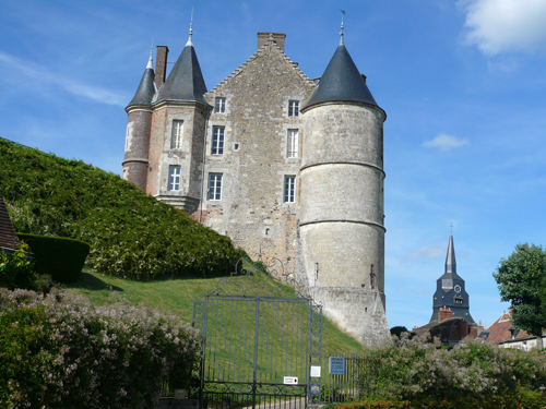 Le château fut à l’origine, une forteresse médiévale. Le pignon visible présente les plus anciens aspects datant des XVe et XVIe siècles. Les façades ont été remaniées aux XVIIIe et XIXe siècles. Le château est célèbre par l’entrevue qui s’est déroulée en 1169 entre le roi de France Louis VII, et le roi d’Angleterre Henri II Plantagenêt, en présence de l’archevêque de Canterbury. Le panorama que l’on découvre du haut de la tour culminant à 248 mètres est exceptionnel et en fait le point habité le plus haut du département de la Sarthe.